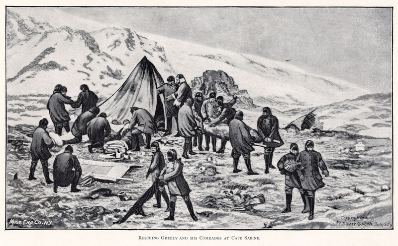 Colwell crawled in [the tent] and took him by the hand, saying to him, “Greely, is this you?” “Yes,” said Greely in a faint, broken voice, hesitating and shuffling with his words, “Yes – seven of us left – here we are – dying – like men. Did what I came to do – beat the best record.” Then he fell back exhausted.[i]