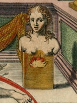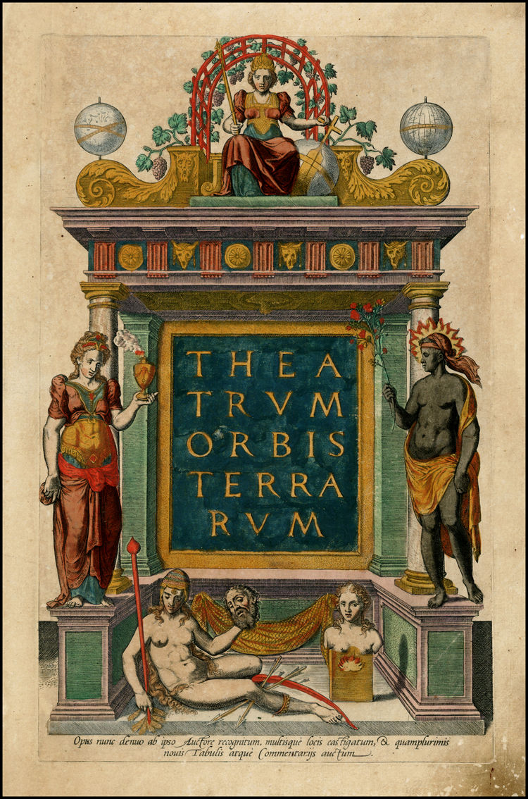 Despite its imposing form, however, Terra Australis was built on fragile empirical foundations, something that Ortelius knew when he published the atlas. The title page of Theatrum, which depicts the continents in allegorical form as goddesses, expresses his ambivalence about the southern continent. At the top of the page, Europe sits on her throne, while Asia and Africa, semi-clothed and semi-barbarous, stand beneath her. At the bottom of the page reclines America the cannibal, naked except for her loin cloth. Terra Australis stands next to her, a figure incompletely revealed in a block of marble, a continent glimpsed but still unknown.